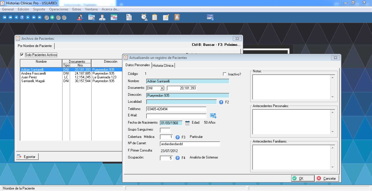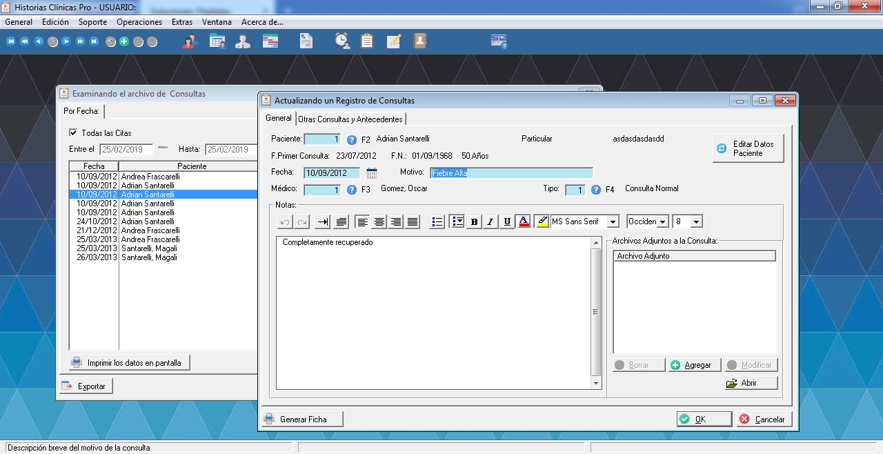 Simple y ágil software diseñado para dar soporte de historias clínicas a Consultorios Externos o