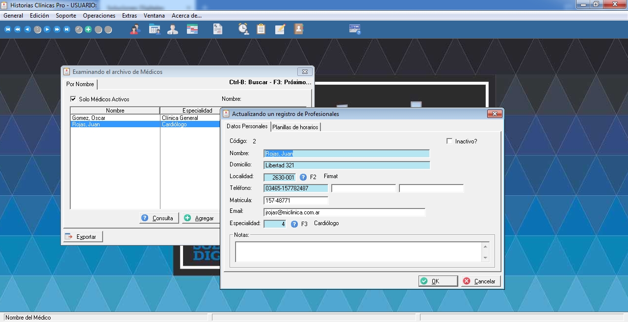 - Carga de Planilla de Horarios de Atención por Medico (individual).