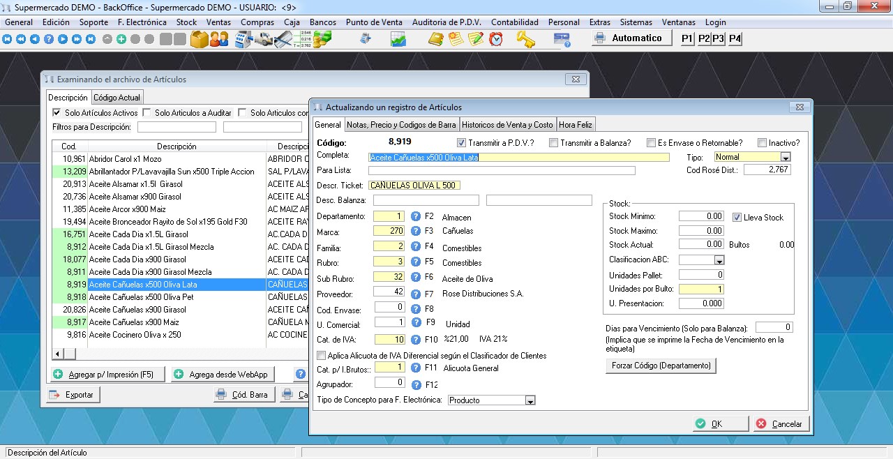 - Operación con Articulos, Combos, Bultos y Conceptos diversos.