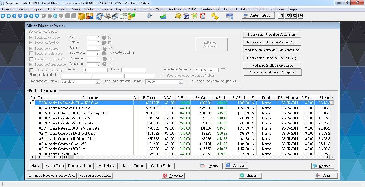 - Carga de Precios con programación de entrada en vigencia.