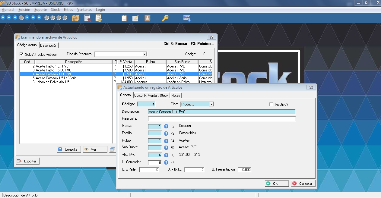 Una gran cantidad de Pymes y Comercios pequeños, en sus inicios, no requieren de un sistema completo de gestión. Pero en muchas ocasiones es fundamental llevar inventario, y cuando los artículos son muchos, las listas de precios. El stock es dinero, y los costos incurridos por no tener un buen manejo del mismo normalmente superan con creces los costos de su gestión. Por ello diseñamos este software. Es completamente compatible con el SD Gestión Medium, por lo que en el momento que el usuario lo desee se pueden migrar los datos cargados y avanzar a un sistema de gestión comercial completo.